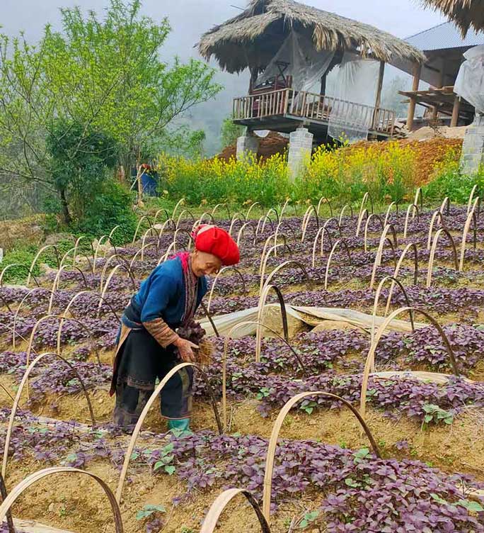Organic drink with fresh feelings and impressive colors. Made from perilla (shiso in Japanese) and hibicus. Perilla is not only one of the best traditional herbs but also a secret medicine of Vietnam which has many good effects for health.