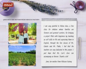 Anh/chị/em Hibiso toàn cầu mở lớp online miễn phí dạy kỹ năng bằng tiếng Anh, nhằm trang bị cho các em học sinh độ tuổi từ 7-11 – là con các cô chú nông dân, công nhân trong chuỗi giá trị Hibiso, những kỹ năng cần thiết trong môi trường toàn cầu hóa. Chương trình này không chỉ giúp các em nâng cao khả năng tiếng Anh mà còn rèn luyện các kỹ năng mềm như giao tiếp, làm việc nhóm và tư duy phản biện.